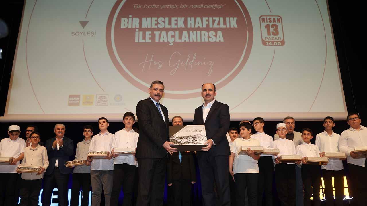 Başkan Altay, temel amaçlarının vatanını, milletini seven, dinine bağlı, ailesine faydalı, memleket sevdalısı bir nesil yetiştirmek olduğunu vurgulayarak, "Yaptığımız programla da aslında bunu perçinlemeyi amaçlıyoruz. Özellikle Gazze'de yaşananlar bize gösterdi ki Müslümanların güçlü olması lazım, Müslümanların bir arada olması lazım. Müslümanların güçlü nesiller yetiştirmesi lazım ki bugün dilimizle söylediğimiz kötülüğe eliyle engel olacak bir nesil ortaya çıksın. İnşallah bu neslin dünyadaki bütün kötülüklere bizzat eliyle de engel olacak bir güce kavuşacağına ben yürekten inanıyorum. Size güzel bir örnek olan Erzurum Valimiz aynı zamanda bir hafız. Mesleğini en iyi yapan bir vali olarak aynı zamanda hafızlık tacıyla da özellikle son katıldığı yarışmada elde ettiği birincilikle sadece Konya'da değil tüm Türkiye'de tanınır hale geldi. Bu aslında sizler için iyi bir örnek arkadaşlar. Mühendis olabilirsiniz, doktor olabilirsiniz ama Kur'an ile yaşamak, Kur'an ile birlikte bir ömür sürmek hepimizin elinde. İnşallah bu çıktığınız yolculukta hayatınızın her döneminde Kur'an'ın size yol arkadaşı olmasını temenni ediyorum. Özellikle ailelere teşekkür ediyorum. Burada anne babalar var, çocuklarınızı bize emanet ediyorsunuz ve bu çocukların dinini bilen, neslini bilen, Kur'an ile hemhal olmuş bir nesil yetişmesine vesile oluyorsunuz. Çalışma arkadaşlarımızla birlikte biz de bu gayretin içerisindeyiz. Hepinizi gözlerinden öpüyorum” değerlendirmesinde bulundu.