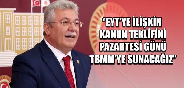 ‘’EYT’YE İLİŞKİN KANUN TEKLİFİNİ PAZARTESİ GÜNÜ TBMM’YE SUNACAĞIZ’’