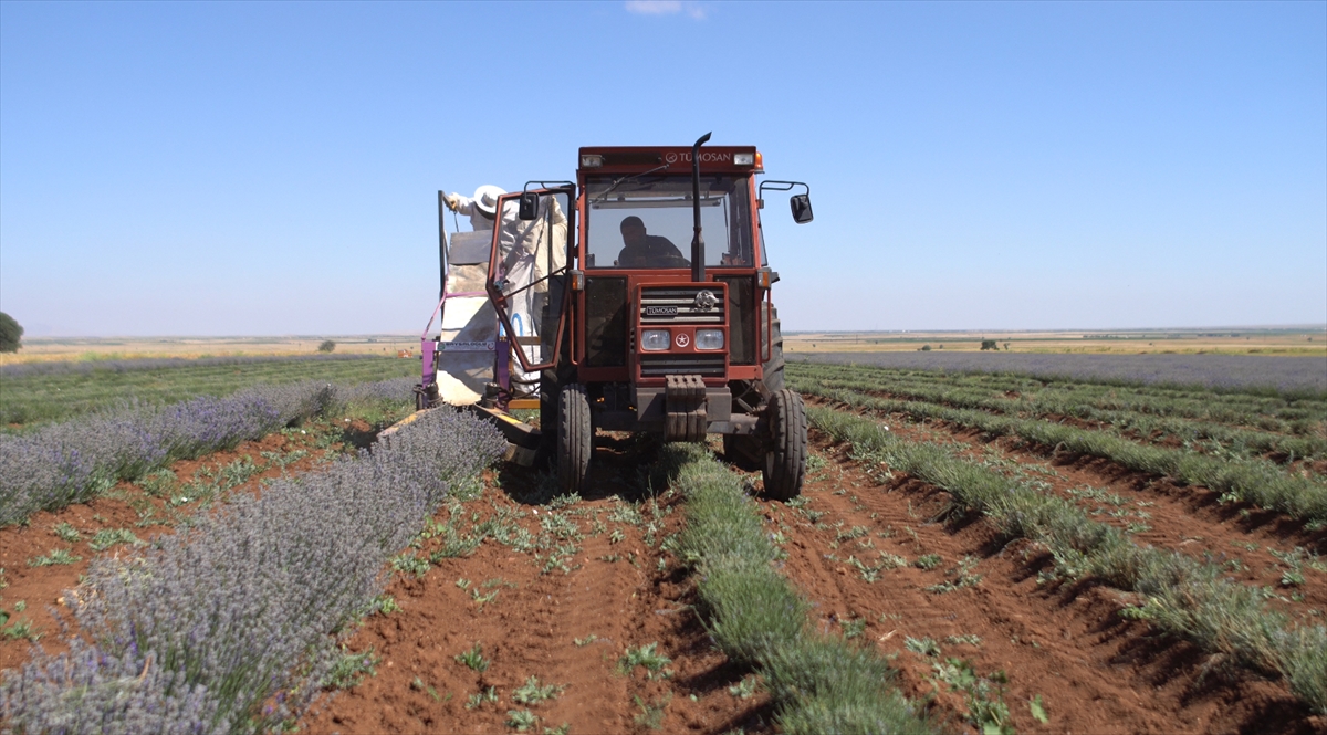 Konya Büyükşehir Belediyesi tarafından Güneysınır'da susuzluğa dayanıklı tıbbi aromatik bitkilerden alternatif ürün olarak ekimi yapılan lavantanın hasadı gerçekleştirildi.