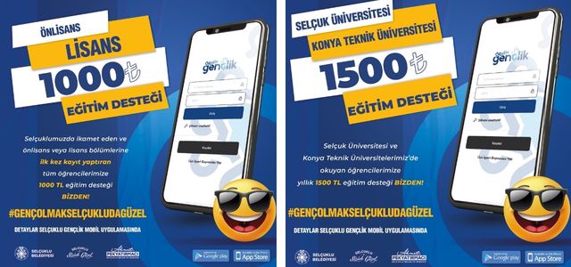 "Geçtiğimiz şubat ayında "Genç Olmak Selçuklu'da Güzel” mottosuyla Selçuklu Gençlik Mobil Uygulamamızı kullanıma başlatıp yararlanabileceğiniz avantajları sizlerle paylaşmıştık. 6 ay gibi kısa bir süre içerisinde yaklaşık 20 bin gencimiz Selçuklu Gençlik Mobil Uygulamamızı indirerek kendilerine sunulan avantajlardan faydalandı. Mobil uygulamamıza gösterdiğiniz ilgiden dolayı hepinize ayrı ayrı teşekkür ediyor, hala indirmeyen genç arkadaşlarıma ilk kullanım avantajlarından yararlanmaları için bir kez daha çağrıda bulunuyorum. Kıymetli gençler, Şubat ayında gerçekleştirdiğimiz kış etkinliğinde mobil uygulamamızın tanıtımını yaparken müjdelerimizin devam edeceğini sizlere ifade etmiştim. Şimdi onları açıklama zamanı. Hazır mıyız? İlk müjdemiz bu yıl sınavlarında başarı göstererek ilk defa üniversiteye yerleşen genç kardeşlerime. Selçuklumuzda ikamet edip, ülkemizin farklı şehirlerindeki üniversitelerinin ön lisans ve lisans bölümlerine ilk kez kayıt yaptıran tüm öğrencilerimize 1000 TL eğitim desteği bizden. İkinci müjdemiz ilçemizde üniversite eğitimine devam eden tüm öğrencilere.