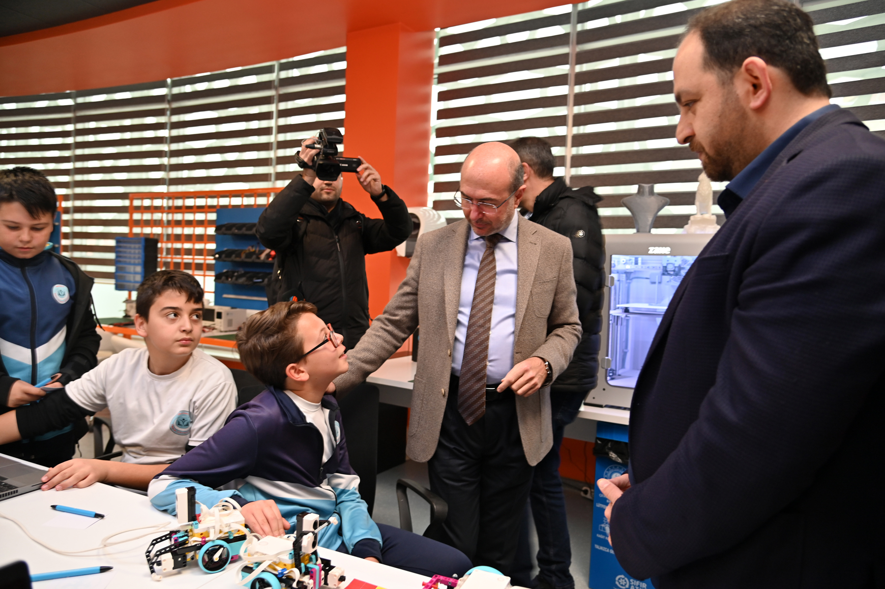 Onların istekleri, talepleri doğrultusunda hem akşam programlarıyla, hem de hafta sonu programlarıyla yetişkin gruplarımızın da istedikleri alanda farklı atölyelerde kendilerini ifade etmeleri ve geliştirmeleri noktasında onlara da fırsat sunmuş oluyoruz. Biz gençlerimizin, öğrencilerimizin, çocuklarımızın mutlu olmasını istiyoruz ve kendilerini en iyi şekilde, en doğru şekilde ifade edebilmelerini, onların gelecekleri açısından da çok önemli olduğunu düşünüyoruz. Bu manada okul dışı öğrenme ortamlarında yaptıkları faaliyetler, çalışmalar onların aslında gelecekte hangi alanda kendilerini geliştirmeleri gerektiği noktasında da onlara yol gösterici oluyor. Bugün işte yukarıda basın mensuplarımızla birlikte dolaşırken fotoğrafçılık atölyesindeki çocuklarımızı gördük basın mensuplarımızdan önce onlar fotoğraf makineleriyle farklı kareler almak için birbirleriyle yarış halindelerdi. Yine aynı şekilde teknoloji tasarım atölyemizdeki çocukların nasıl orada farklı teknolojik ürünleri ürettiklerini gördük. Müzik atölyemizdeki çocukların gitar çalarak kendilerini ne kadar mutlu hissettiklerini gördük. Yine tarih atölyemizde çocukların tarih bilincini nasıl kazandıklarını gördük. Yine bebek üretim atölyemizde ortaokuldan gelen çocuklarımızın farklı ürünleri üretmenin zevkine nasıl vardıklarını gördük.
