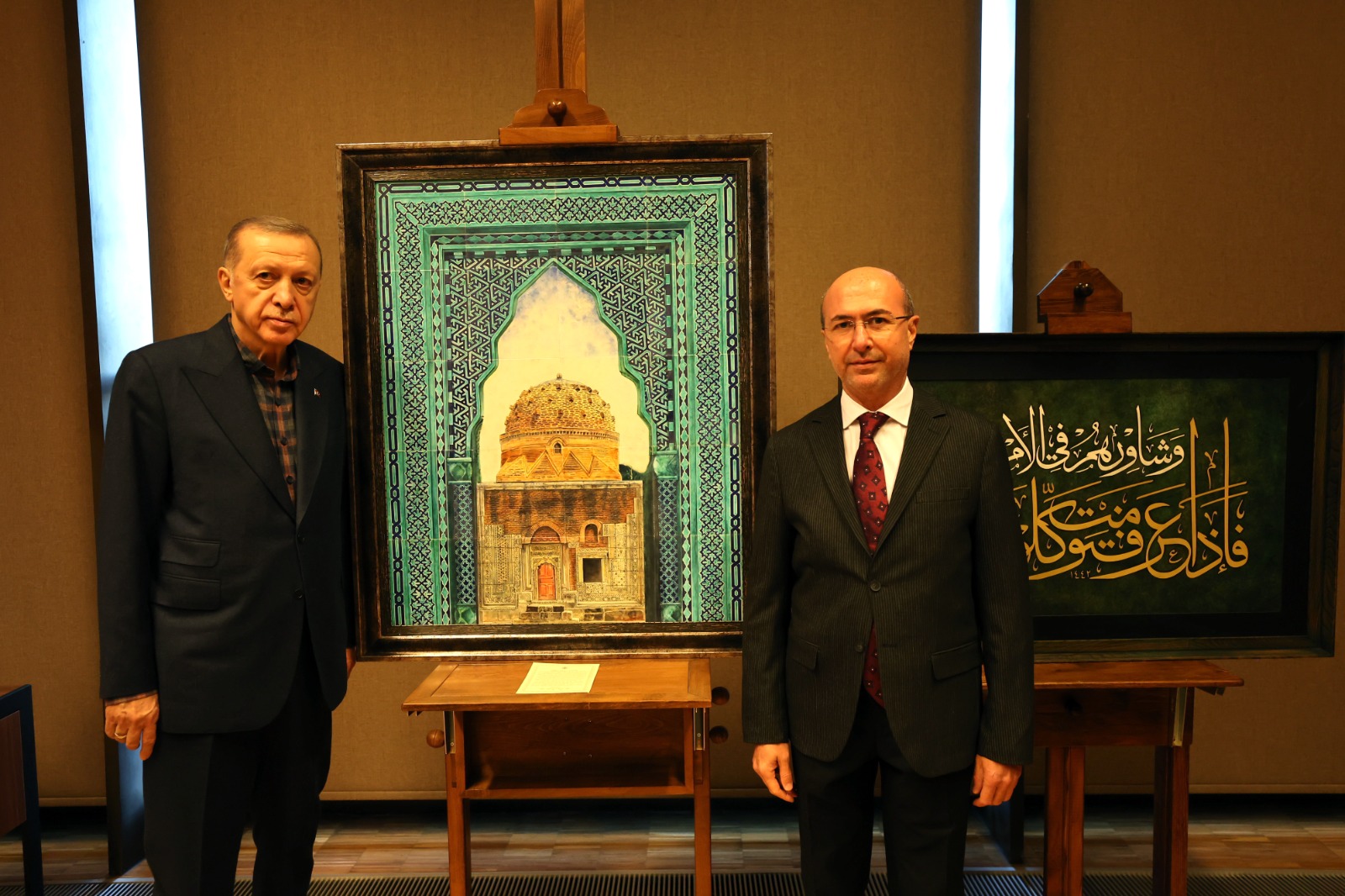 Program öncesinde Selçuklu Belediye Başkanı Ahmet Pekyatırmacı, Başkan Erdoğan'a Selçuklu Belediyesi Çini Atölyesi'nde üretilen ve Konya'nın simge eserlerinden olan "Has Bey Dârü'l Huffazı”nın çini tablosunu takdim etti.