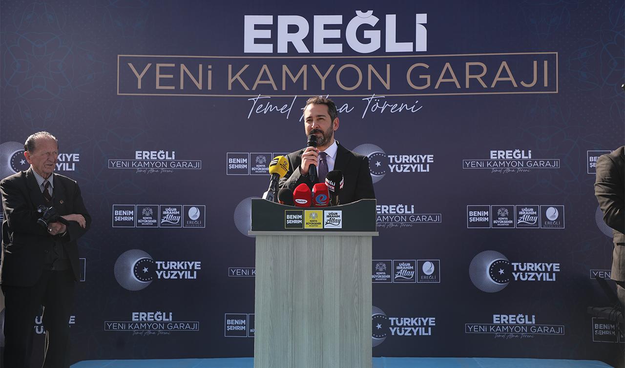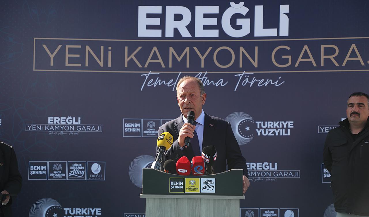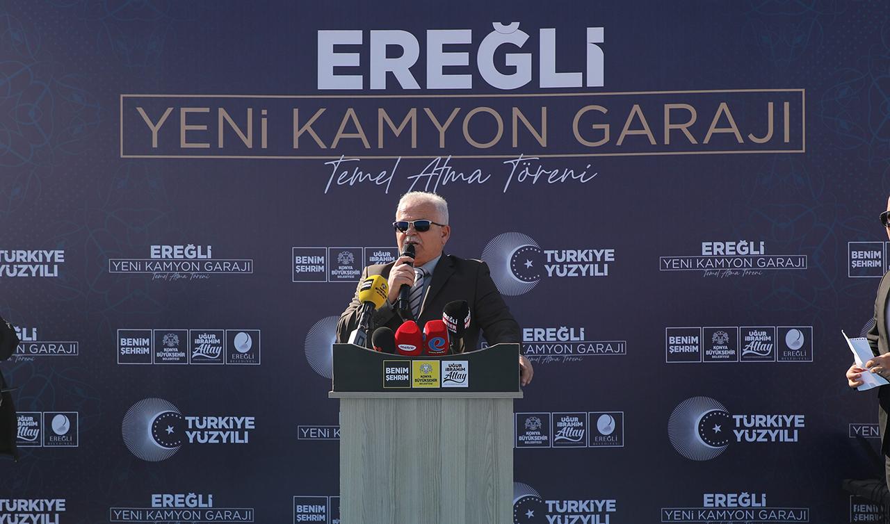AK Parti Ereğli İlçe Başkanı İbrahim Erol ve MHP Ereğli İlçe Başkanı Musa Yılmaz'ın da katıldığı programında konuşmaların ardından Konya Büyükşehir Belediyesi tarafından yapılacak Ereğli Kamyon Garajı'nın temeli dualarla atıldı.