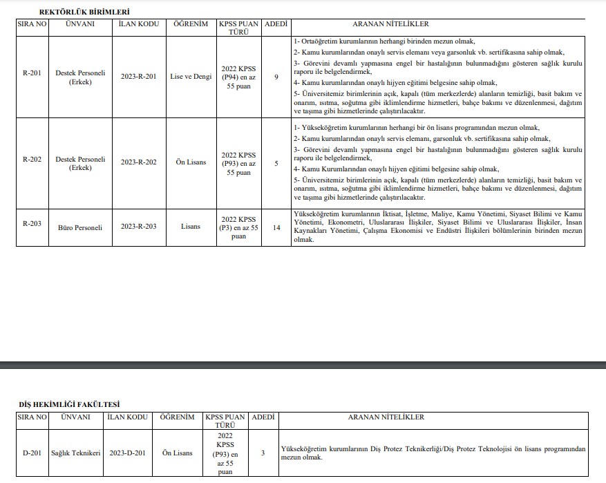 6) 2022 KPSS (B) grubu sınavına girmiş olmak, (Lisans mezunları için 2022 KPSS (B) grubu KPSSP3 puanı, ön lisans mezunları için 2022 KPSS (B) grubu KPSSP93, ortaöğretim (lise ve dengi) mezunları için 2022 KPSS (B) grubu KPSSP94 puanı esas alınacaktır.)