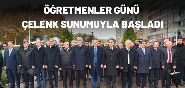 ÖĞRETMENLER GÜNÜ ÇELENK SUNUMUYLA BAŞLADI