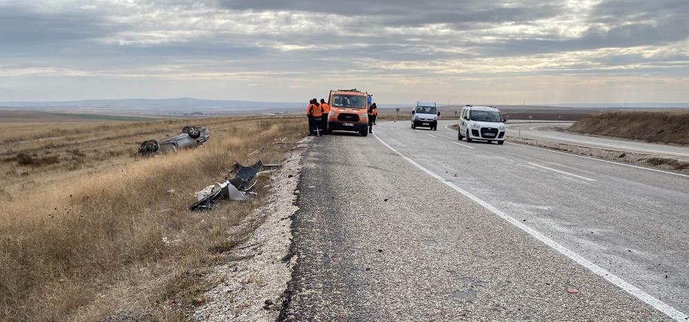 Kontrolden çıkan araç karşı şeride geçip takla attı. Takla atan araç şarampole devrilerek, ancak durabildi.