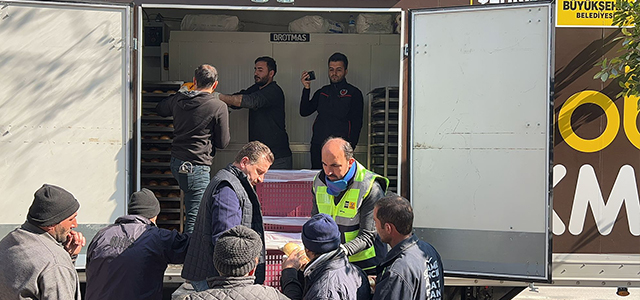 BAŞKAN ALTAY MOBİL MUTFAK TIRI VE EKMEK FIRININDA YEMEK DAĞITIMI YAPTI