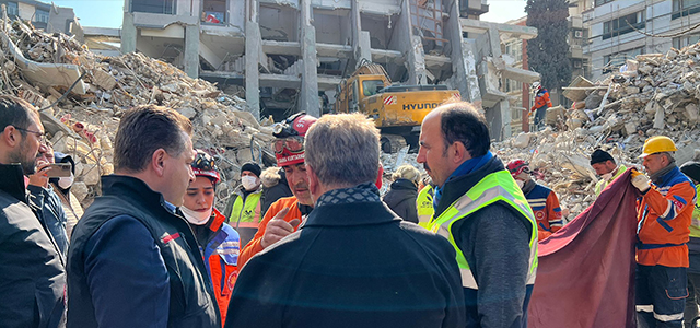 Başkan Altay, Cumhurbaşkanı Başdanışmanı Mustafa Akış, AK Parti Balıkesir Milletvekili Mustafa Canbey ve Balıkesir Büyükşehir Belediye Başkanı Yücel Yılmaz ile birlikte depremin harabeye çevirdiği Hatay şehir merkezinde incelemelerde de bulundu.