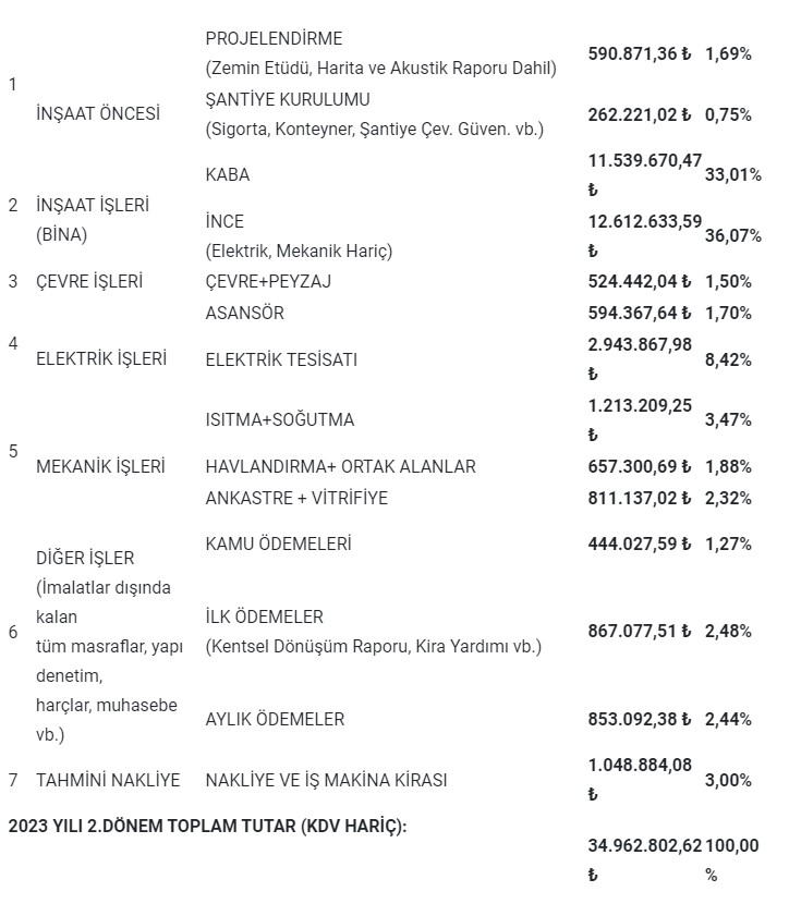Özellikle depremler olduğunda akla gelen "Oturduğum bina güvenli mi?” sorusu, binanın maliyetlerini gün yüzüne çıkarttı. 2023 yılı bina maliyetleri şu şekilde oluştu;
