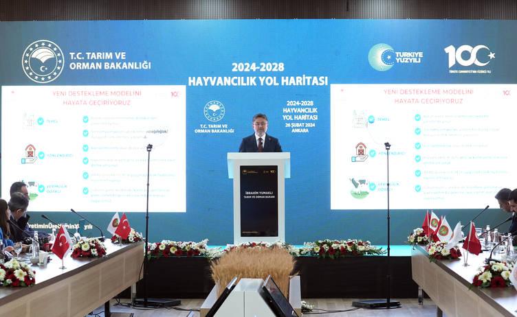 Tarım ve Orman Bakanı İbrahim Yumaklı, Tarım İşletmeleri Genel Müdürlüğü (TİGEM) Sosyal Tesisleri'nde düzenliği basın toplantısında, 2024-2028 yıllarında uygulanacak 10 maddelik Hayvancılık Yol Haritası'nı açıkladı.
