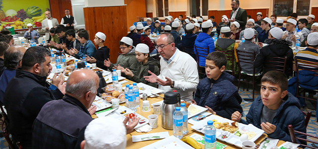 Kendisi için anlam dolu iftarlardan birini yaşadığını kaydeden Meram Belediye Başkanı Mustafa Kavuş, "Sizlerle bir araya gelmiş olmaktan duyduğum mutluluğu kelimelerle ifade edebilmek mümkün değil. Sizlerle buluşmuş olmak bizler için çok kıymetli, iyiki varsınız, iyiki hep beraberiz. Bizler sizler için ne güzel olacaksa onun için çalışmaya koşturmaya devam ediyoruz. Burada bulunan çok amaçlı salonu kütüphaneye çevireceğiz. Ayrıca film izleyebilmeniz için bir mekan hazırlayacağız. Şunu bilin ki bir isteğiniz olursa ben 7/ 24 emrinizdeyim” diye konuştu.