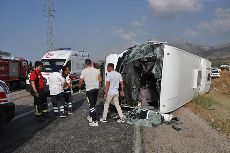 2 servis aracı ve otomobilin karıştığı kazada 2 kişi öldü, 35 kişi yaralandı