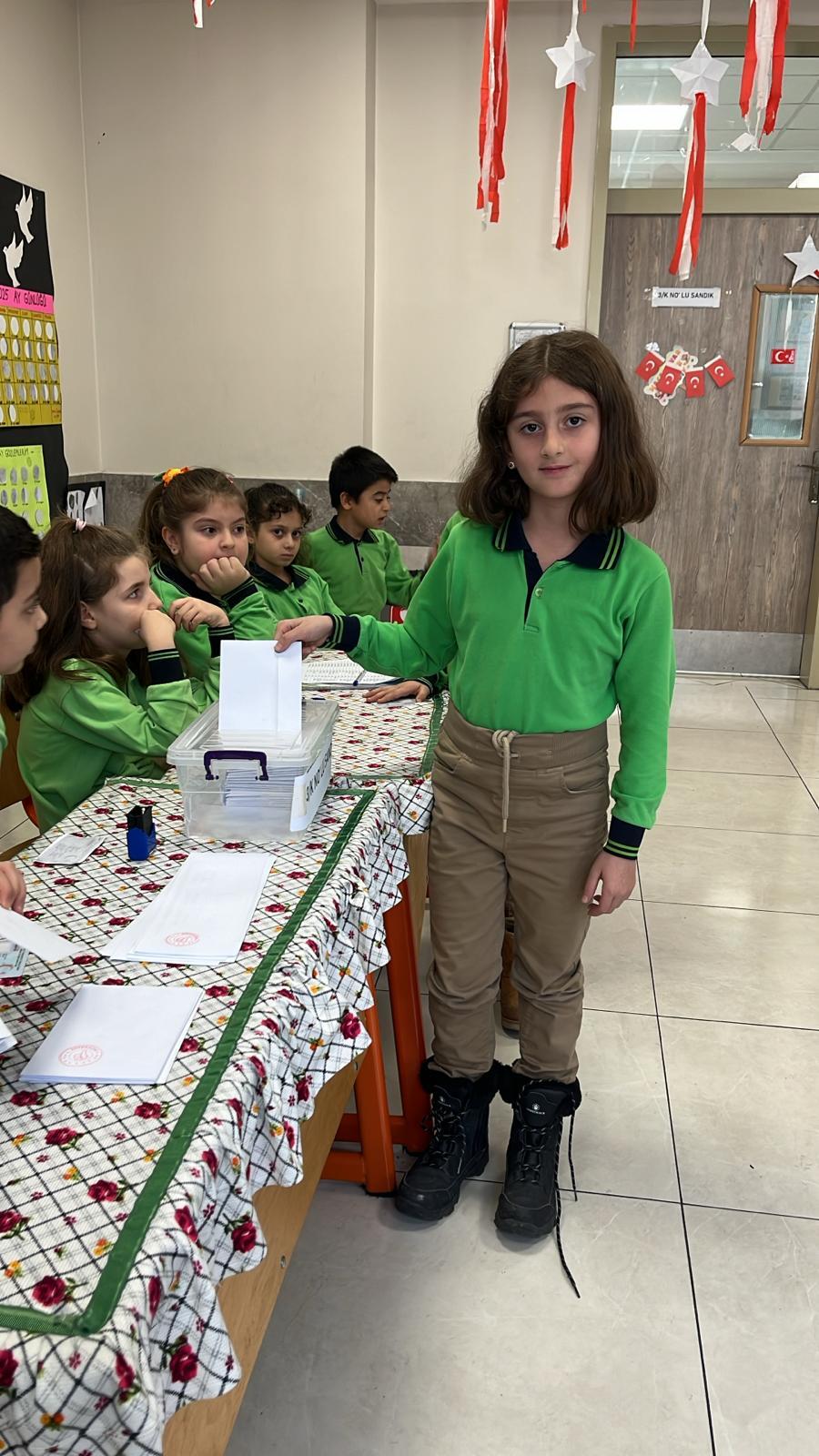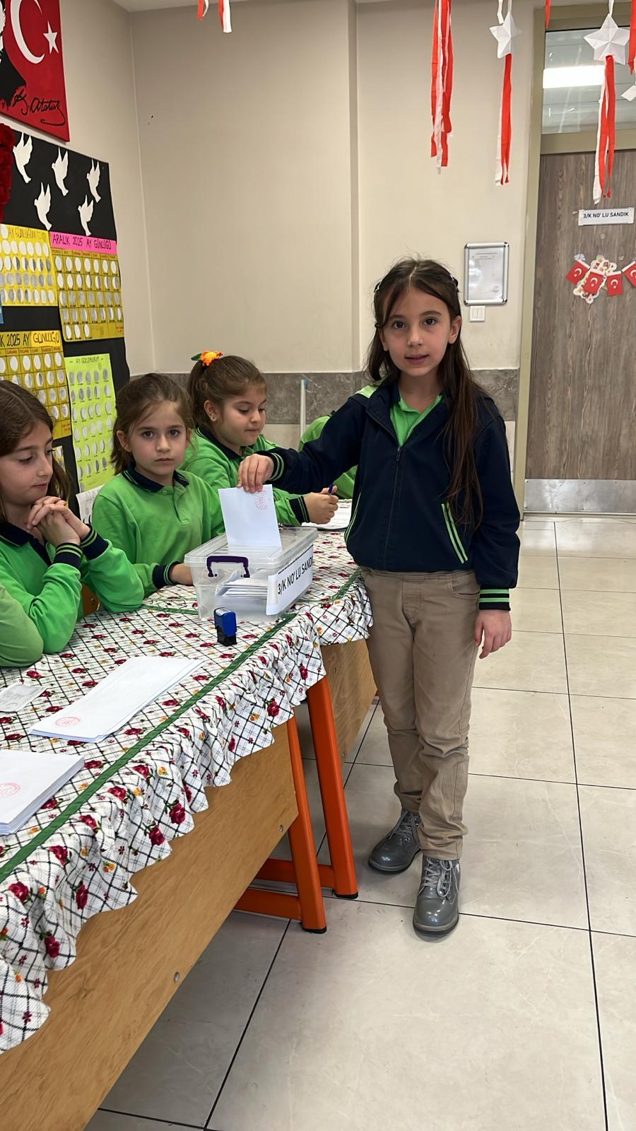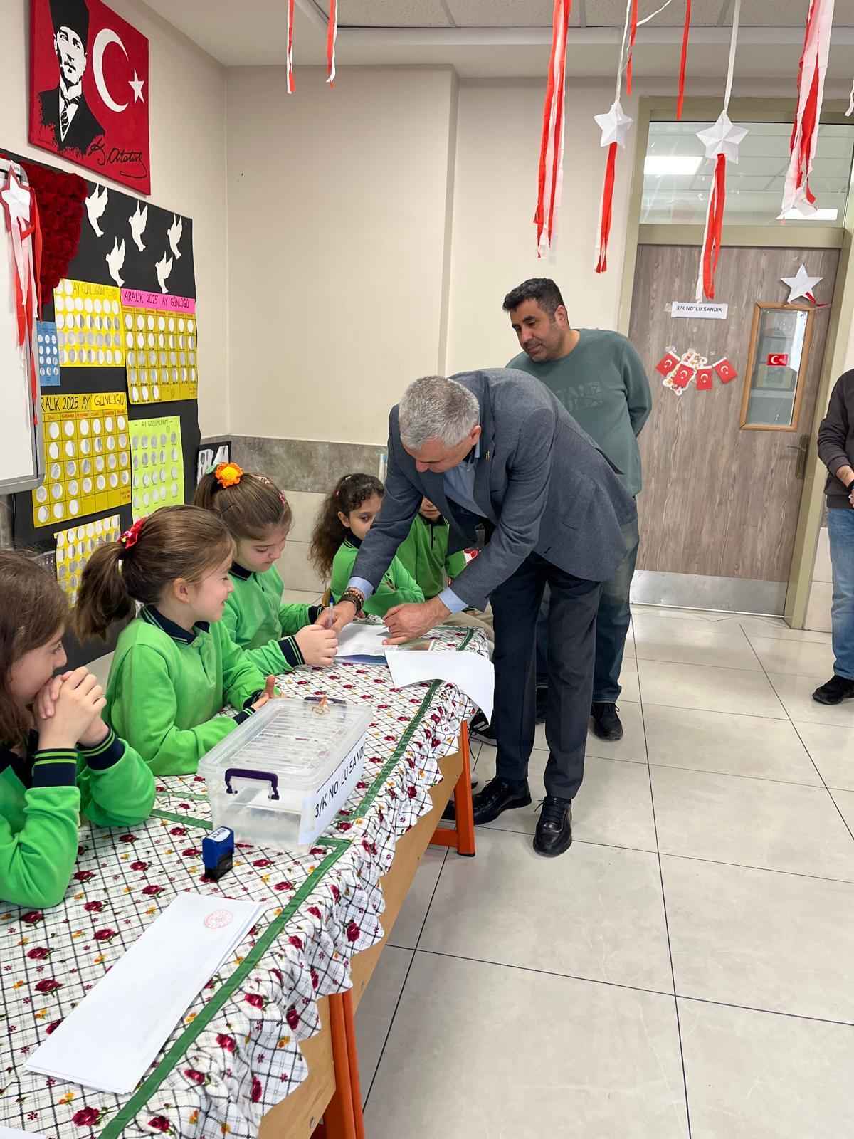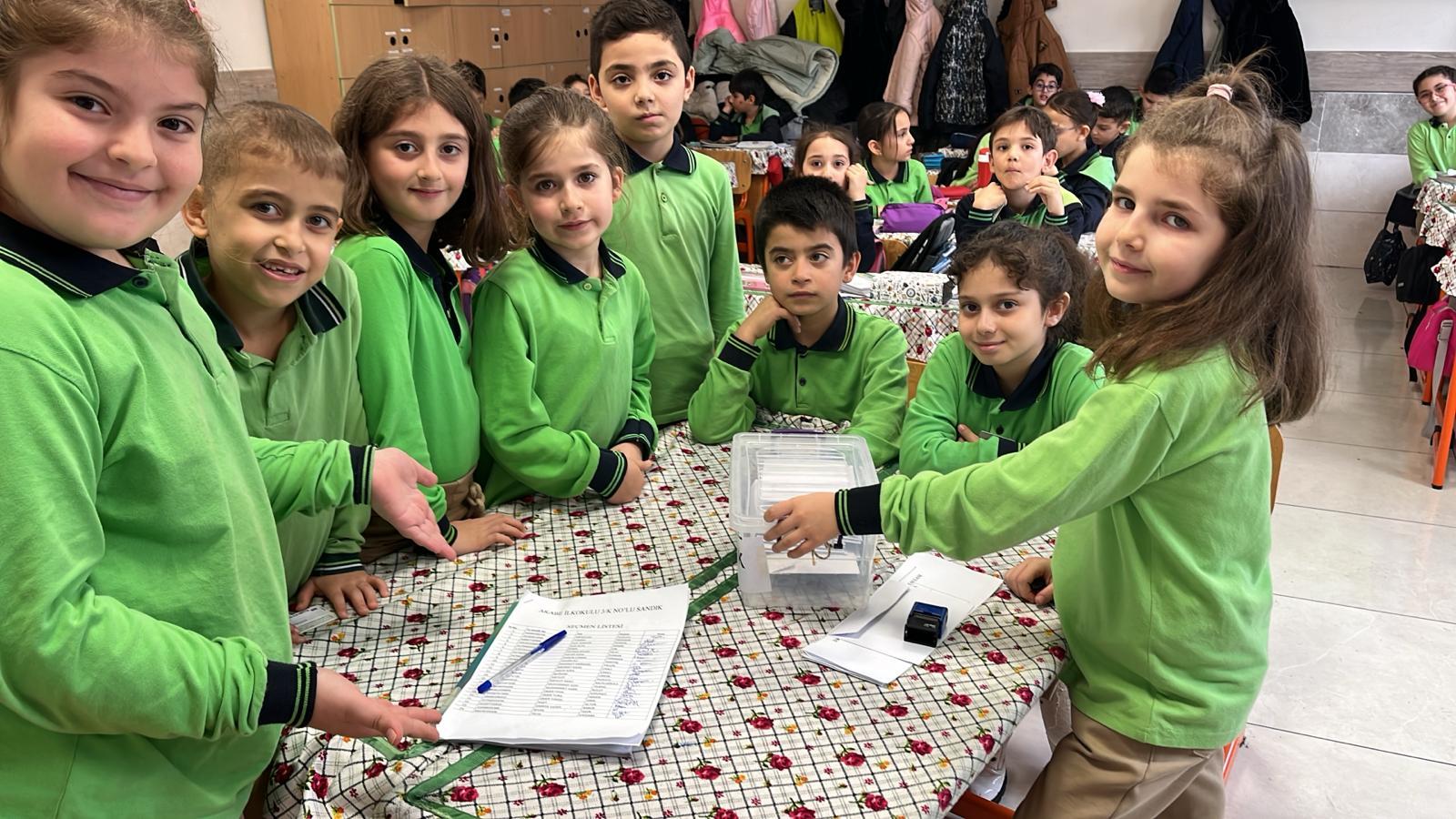 Seçim öncesinde başkan adayları, hazırladıkları vaatlerini sınıf arkadaşlarına anlattı. Ardından öğrenciler, özenle hazırlanan sandıklarda oylarını kullanarak demokratik haklarını uyguladı.