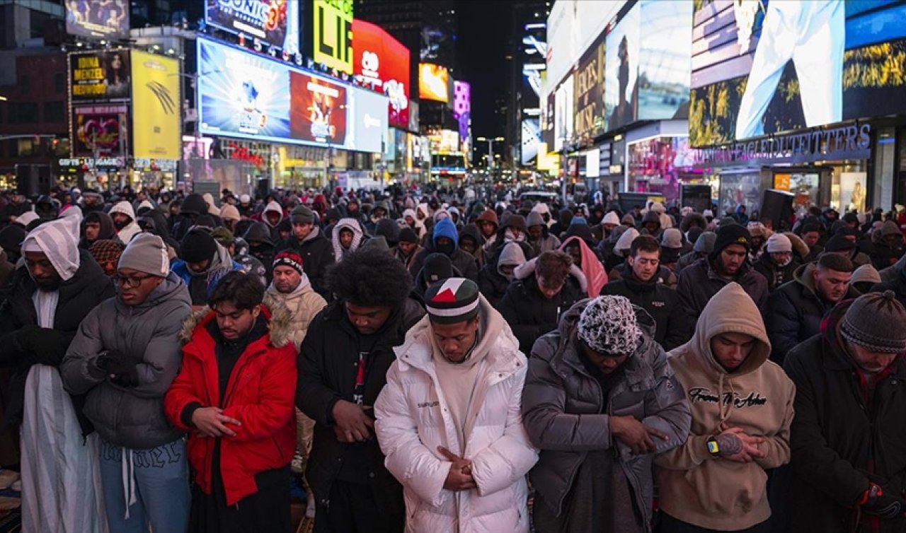 ABD’deki Times Meydanı’nda bir araya gelen Müslümanlar teravih namazı kıldı