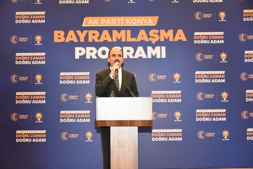 Saygı duruşu ve İstiklal Marşı'nın okunmasının ardından kürsüye çıkan AK Parti Konya İl Başkanı Hasan Angı, Ramazan Bayramı'na erişmenin manevi huzurunu yaşadıklarını kaydetti. Kahramanmaraş merkezli meydana gelen depremler nedeniyle Ramazan ayını buruk geçirdiklerini ifade eden Başkan Angı, "Yaşanan deprem felaketinden sonra Sayın Cumhurbaşkanımızın riyasetinde bütün bakanlarımız, büyükşehir belediye başkanlarımız, ilçe belediye başkanlarımız, vakıf, dernek ve sendikalarımız tüm ekipleriyle birlikte yaraları sarmak için seferber oldular. Allah hepsinden razı olsun. Rabbim hem aziz milletimizi hem de tüm insanlığı bu tür felaketlerden korusun” dedi.