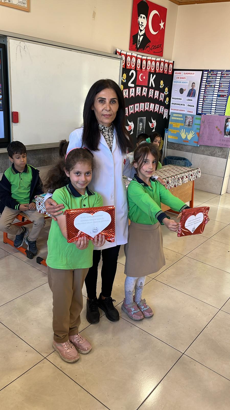 Eski Başkan Aymira Özdemir  ve başkan yardımcısı Sabriye Sahra Babur'a öğretmenleri Şehriban Altaş,  görevlerini layıkıyla yerine getirdikleri için hediye takdiminde bulundu.