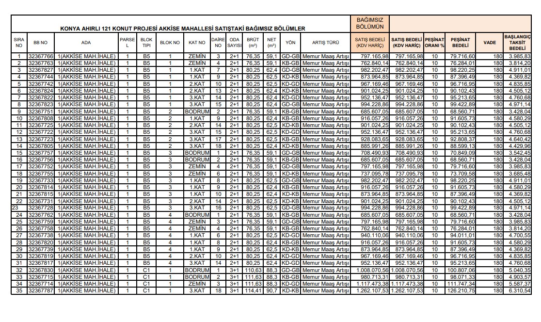 Satışa Sunulan Konut Sayısı ise 3+1 4 Adet, 2+1 31 Adet olmak üzere yer alıyor.
