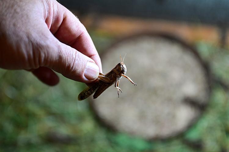 Çekirgeler için 450 kafesin bulunduğunu belirten Gökgöl, "Çekirge her türlü canlı için temel gıdadır. Protein oranı çok yüksektir. Her türlü canlı bunu tüketebilir. Bu çekirgeler doğada bildiğimiz çekirgeler gibi çok zıplayan, sağa sola kaçan, yakalaması zor olan canlılar değildir." dedi.