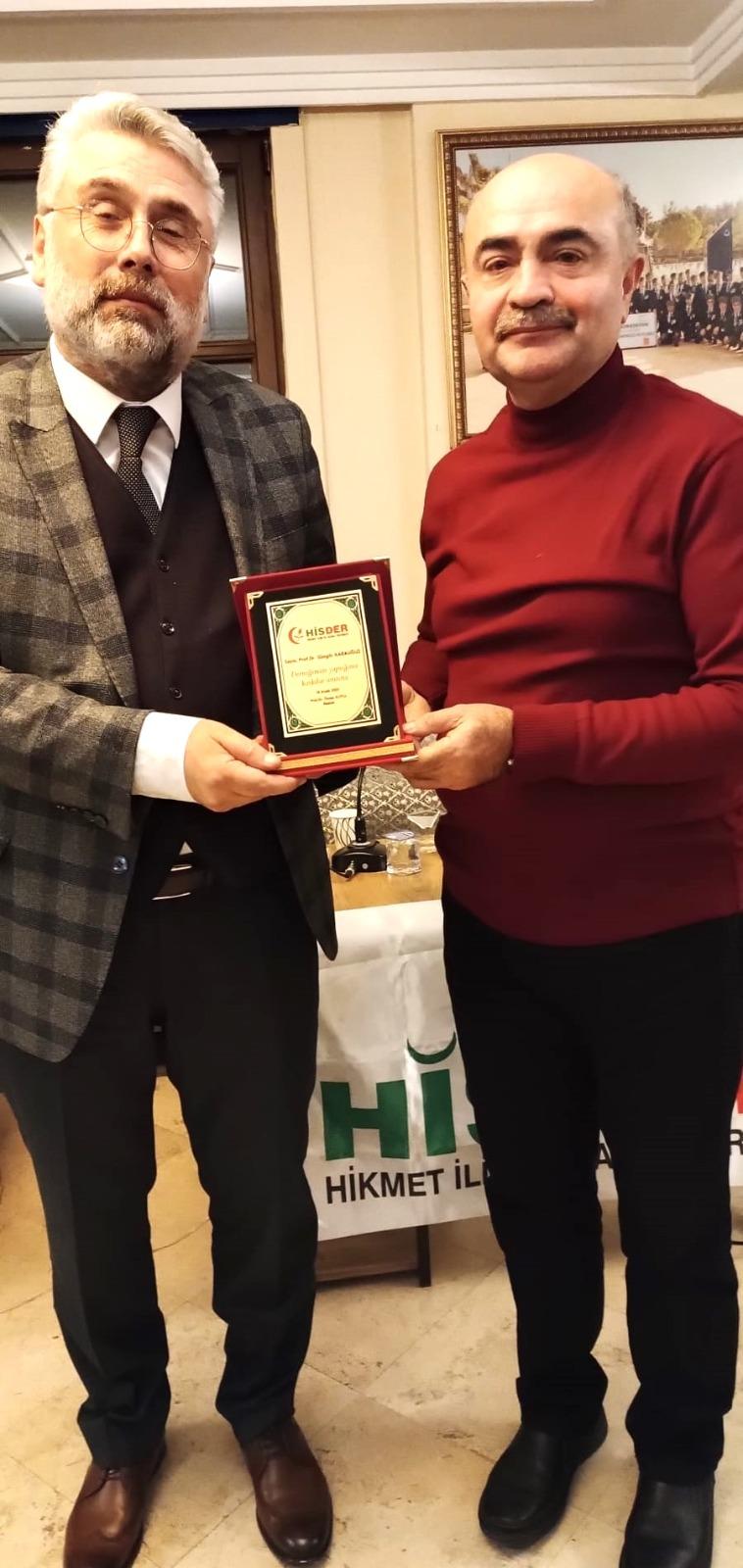 Sohbetin soru cevap kısmından sonra HİSDER Başkanı Prof. Dr.Önder KUTLU tarafından Prof. Dr. Güngör KARAUĞUZ'a dernek plaketi takdim edildi. Toplantı toplu fotoğraf çekimiyle sona erdi.