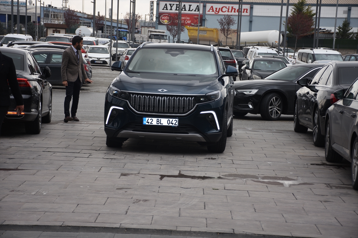 Altay, AK Parti Konya Milletvekilleri Tahir Akyürek ve Ziya Altunyaldız ile AK Parti Konya İl Başkanı Hasan Angı, toplantının yapıldığı salona "Gemlik mavisi" Togg ile geldi.