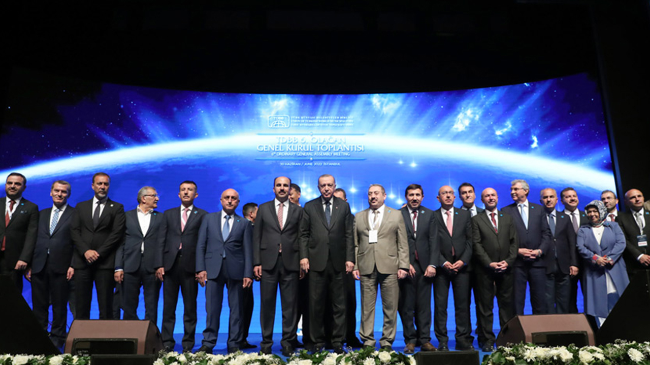 Haliç Kongre Merkezi'nde gerçekleştirilen TDBB 6. Olağan Genel Kurulu Cumhurbaşkanı Recep Tayyip Erdoğan, Türkiye Büyük Millet Meclisi (TBMM) Başkanı Mustafa Şentop ile Türk Devletleri Teşkilatı Aksakallılar Heyeti Başkanı Binali Yıldırım'ın katılımlarıyla gerçekleştirildi.
