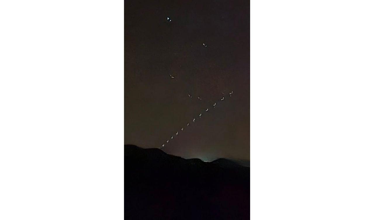 Gökyüzünde görülen ışık diziliminin, Elon Musk'ın sahibi olduğu SpaceX şirketinin Starlink uydu ağına ait uydular olduğu tahmin ediliyor.