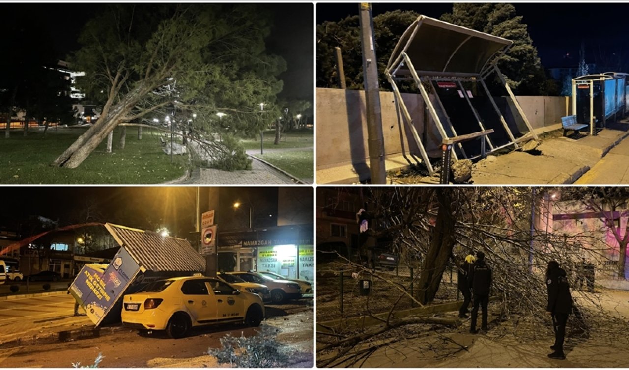 Bazı çöp konteynerlerinin devrildiği fırtına reklam panoları ve tabelalara da hasar verdi.