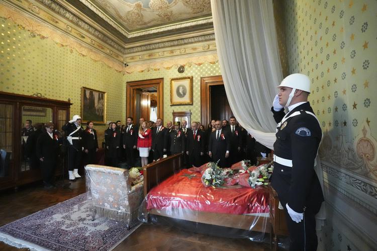 Türkiye Cumhuriyeti'nin kurucusu Büyük Önder Mustafa Kemal Atatürk, 86 yıl önce ebediyete intikal ettiği Dolmabahçe Sarayı'ndaki odasında törenle anıldı.Sarayın Harem bölümündeki 71 numaralı odada düzenlenen anma töreni, Cumhurbaşkanlığı çelenginin sunulmasının ardından İstanbul Valiliği, Türk Silahlı Kuvvetleri ve İstanbul Büyükşehir Belediye Başkanlığı adına Atatürk'ün hayata gözlerini yumduğu yatağın üzerine çiçek buketlerinin bırakılmasıyla başladı.