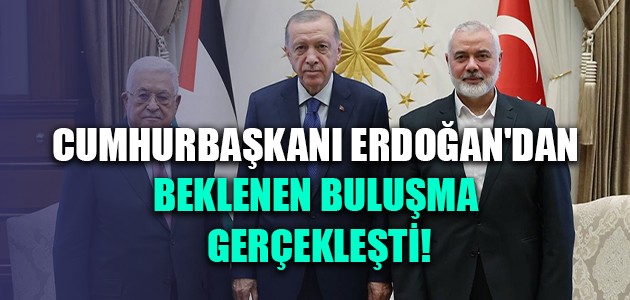 Cumhurbaşkanı Erdoğan'ın, Türkiye'ye resmi ziyarette bulunan Filistin Devlet Başkanı Abbas ve Hamas Siyasi Büro Başkanı Heniyye ile Cumhurbaşkanlığı Külliyesi'ndeki üçlü görüşmesi, basına kapalı gerçekleşti.