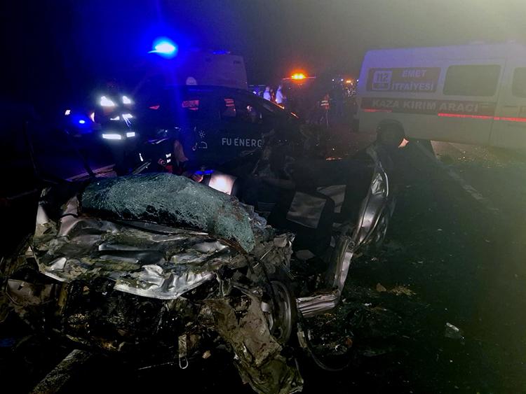 Ekipler, sürücü Mustafa ile eşi Havva Nur Özer'in (22) kaza yerinde hayatını kaybettiğini belirledi.Yaralanan diğer araç sürücüsü Aldemir, 112 Acil Sağlık ekiplerince Tavşanlı Doç. Dr. Mustafa Kalemli Devlet Hastanesi'ne kaldırıldı.
