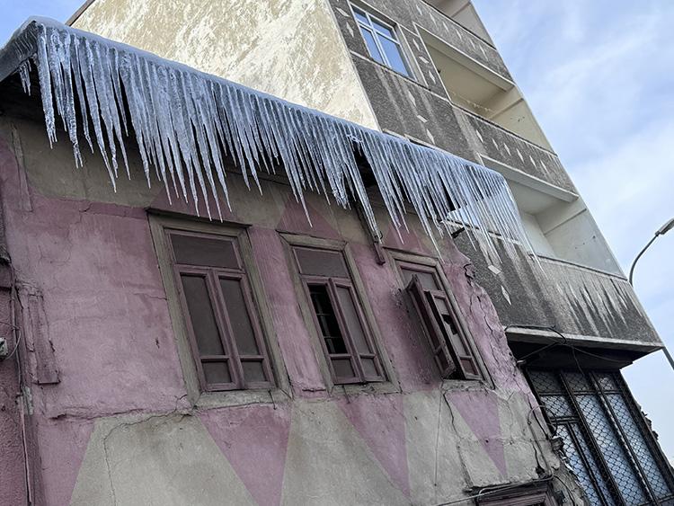 Ağaçlarda kırağı, binaların çatılarında ise buz sarkıtları oluştu.