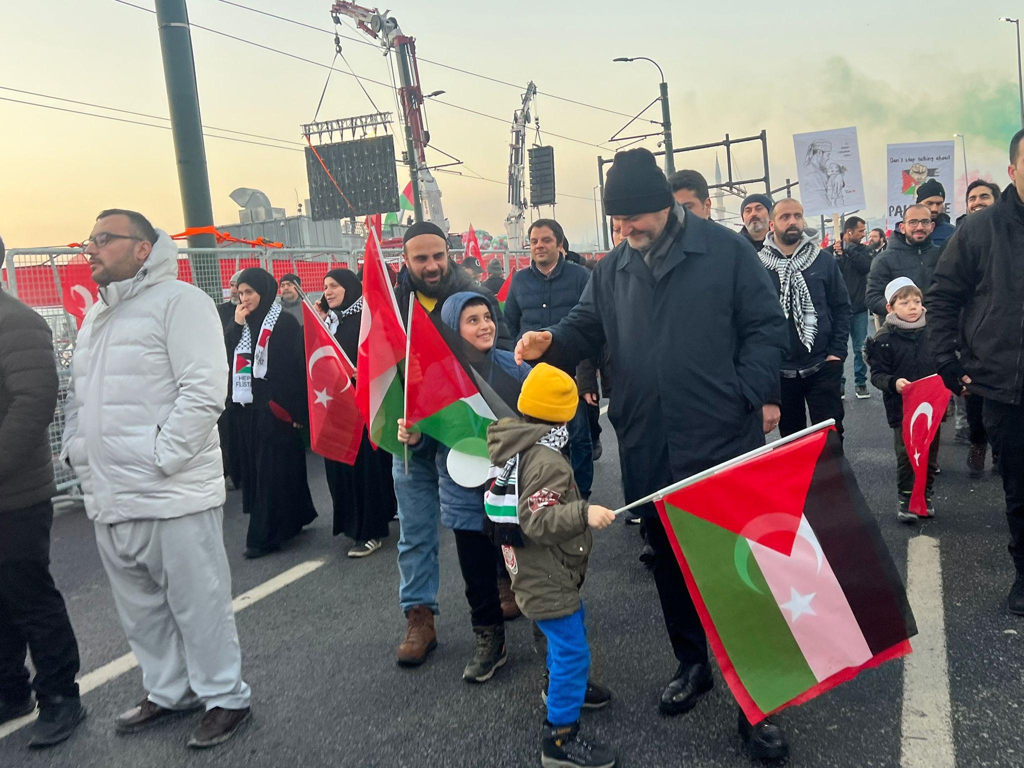 Türkiye Gençlik Vakfının (TÜGVA) öncülüğünde, "Dünyayı uyandırıyoruz", "Dün Ayasofya, bugün Emevi, yarın Aksa" ve "Bir güneş doğuyor" sloganlarıyla yapılan eylem için Ayasofya-i Kebir Cami-i Şerifi, Sultanahmet, Eminönü Yeni, Fatih ve Süleymaniye camilerinin önlerinde toplanan katılımcılar, kortejlerle Galata Köprüsü'ne yürüdü.
