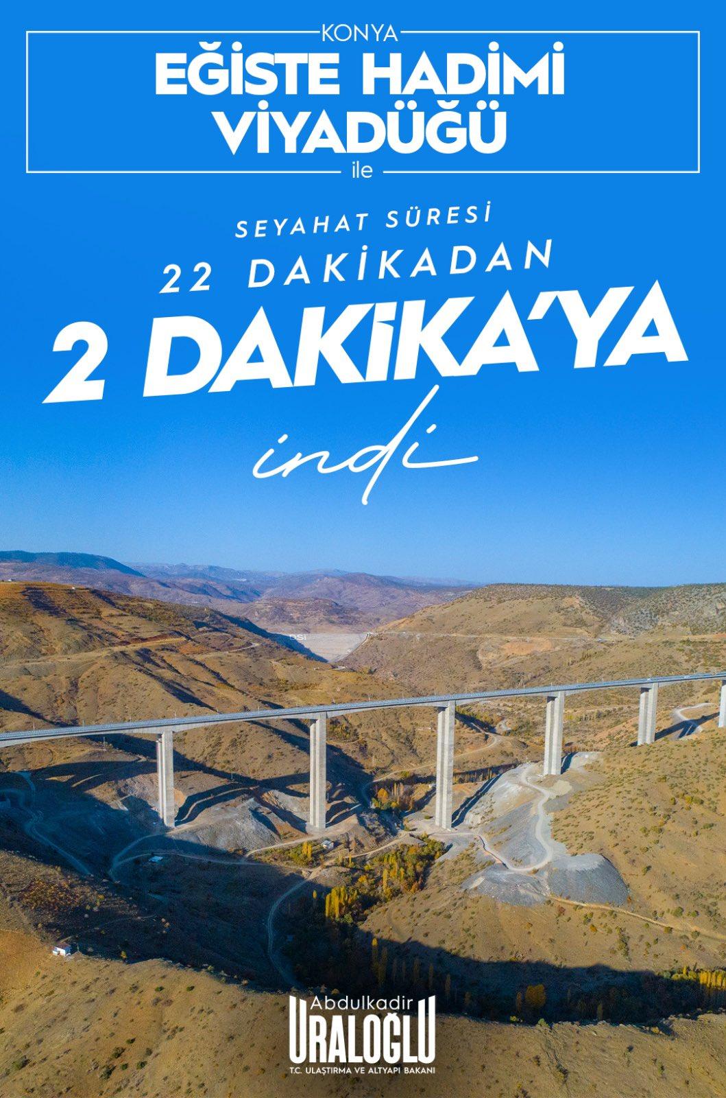 Konya ile Antalya, Mersin ve Karaman gibi önemli şehirler arasındaki ulaşımı hızlandıran viyadük, aynı zamanda güvenli sürüş imkânı sunarak kaza riskini de minimize ediyor.