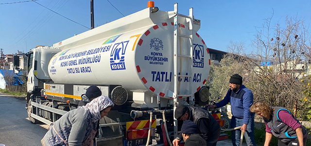 Konya Büyükşehir Belediyesi, iki büyük depremin yaşandığı Hatay'da sağlıklı içme ve kullanma suyu ihtiyacına çözüm üretiyor.