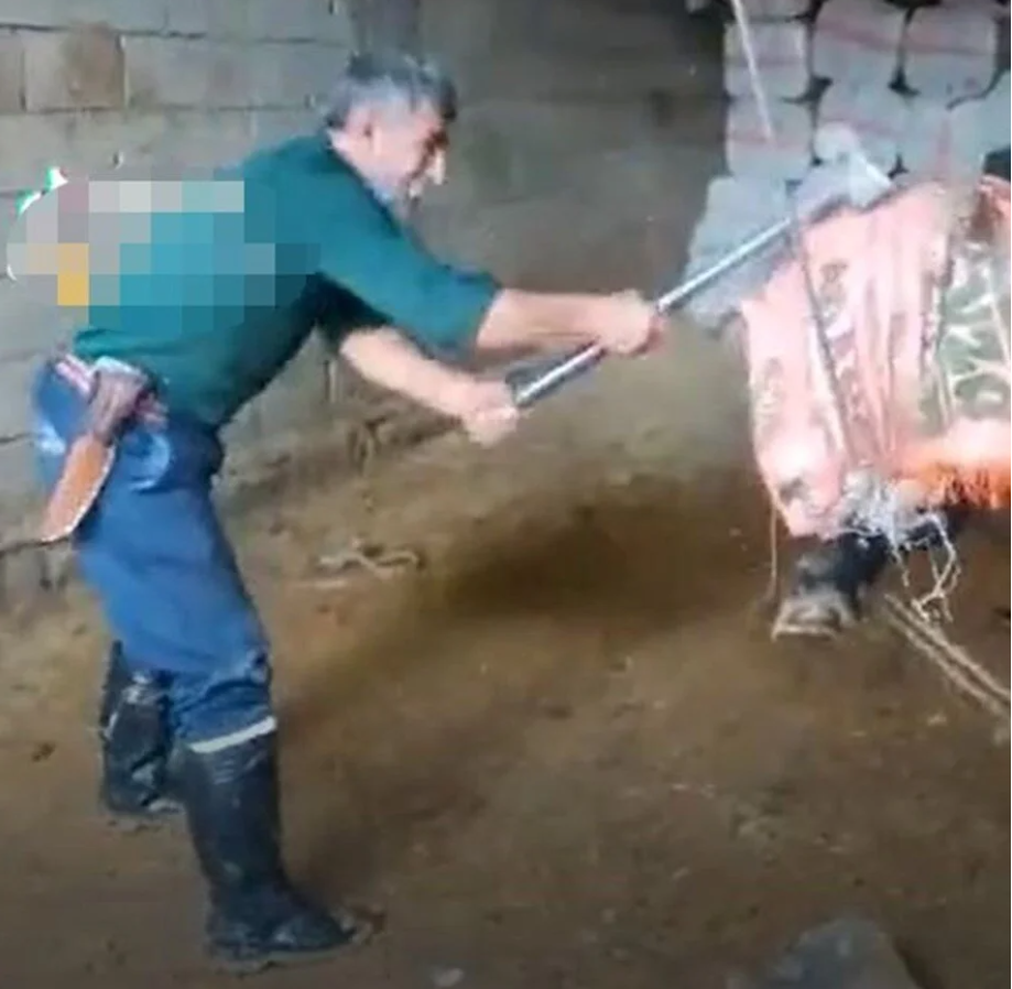 Mardin-Kızıltepe ilçesinde bir kişi ahırda kesim yapacağı boğanın kafasına defalarca vurup öldürdü. Görüntüler sosyal medyada yankı bulduktan sonra olayla ilgi polis ve Jandarmanın ortak çalışması sonucunda 3 kişi göz altına alındı.