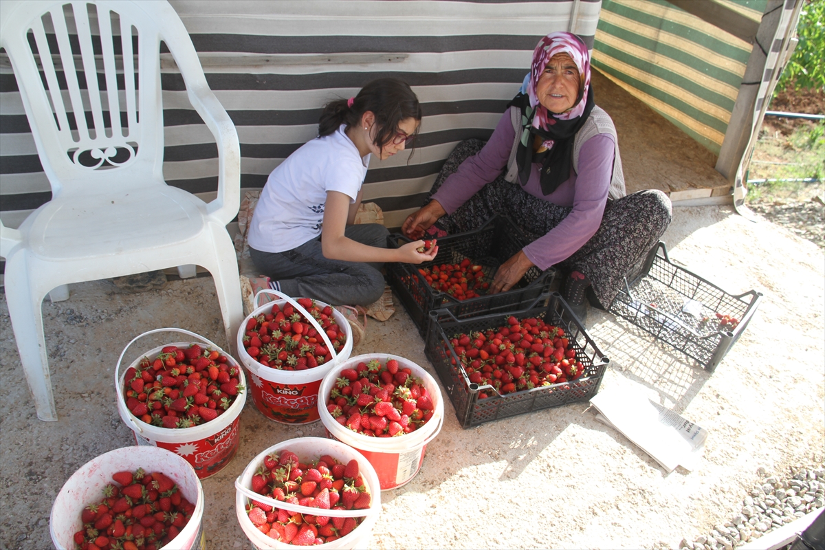 Her gün tarlada mesai yaptıklarını dile getiren Kemer, "Bu sene kuraklık yüzünden işlerimiz zorlaştı. Bahçemde Albion ve Portola olmak üzere iki çeşit çilek var. Çilek üretiminde kış mevsimi gelip ürün üşüyene kadar 7-8 kez hasat yapabiliyoruz. Bu yıl ise ürünü almaya nisan sonunda başladık. İlk hasat bitmek üzere." diye konuştu.