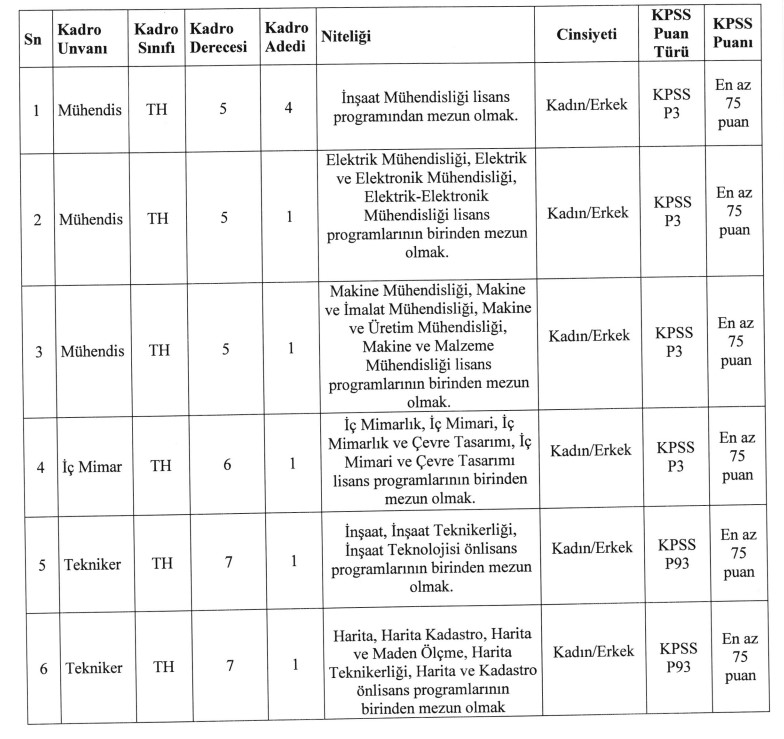 Belediyemizin atama yapacağı yukarıda belirtilen boş memur kadroları için yapılacak başvurularda uyulması gereken genel ve özel şartlar aşağıdadır.