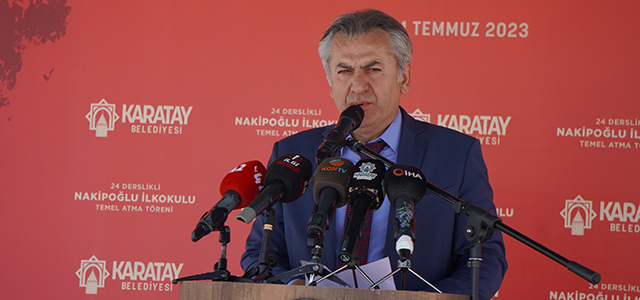 Konuşmaların ardından Nakipoğlu Mahallesi'ne kazandırılacak 24 derslikli Karatay Belediyesi Osman Benliler İlkokulu'nun temeli, dualar eşliğinde atıldı.