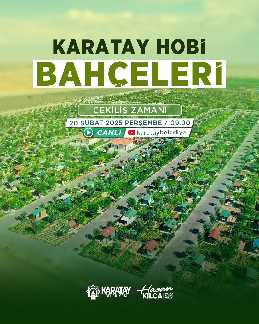 Hobi Bahçelerinin yeni hak sahipleri 20 Şubat 2025 Perşembe günü saat 09:00'da Karatay Belediyesi'nde noter huzurunda gerçekleştirilecek çekiliş ile belirlenecek. Vatandaşların takip edebilmesi adına çekiliş, Karatay Belediyesi'nin resmi YouTube kanalından canlı yayın ile izlenebilecek.