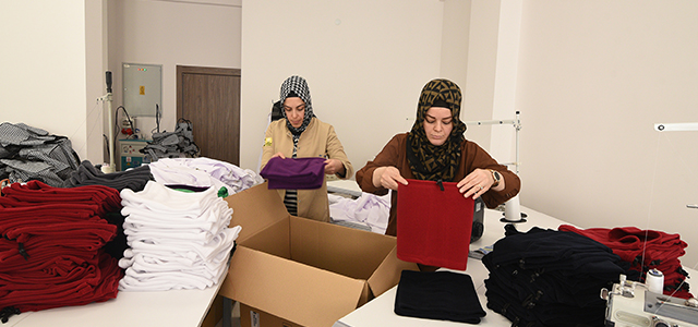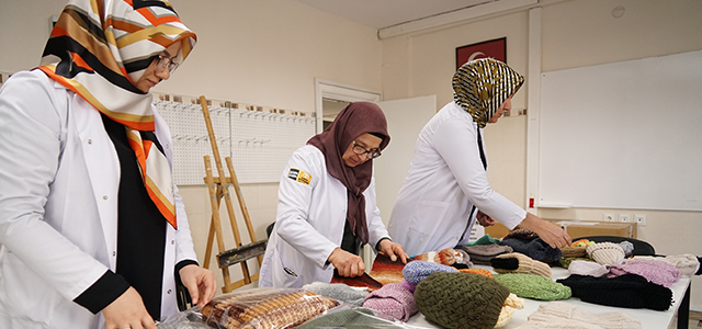 Depremin ilk gününden beri eğitmen, kursiyer ve gönüllüler el birliği yaparak gece gündüz kurs merkezlerinde ve atölyelerde kışlık kıyafetler, nevresim takımları, battaniyeler, uyku tulumları üreterek depremzedelere gönderiyor.