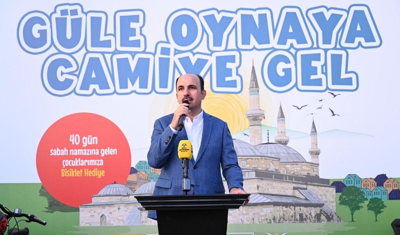 Meram Sultan Alparslan Camii'ndeki proje başlangıç programında çocuklarla sabah namazında bir araya gelen Başkan Altay, birçok iş yaptıklarını ama en çok keyif aldıkları işin "Güle Oynaya Camiye Gel” programı olduğunu vurguladı.