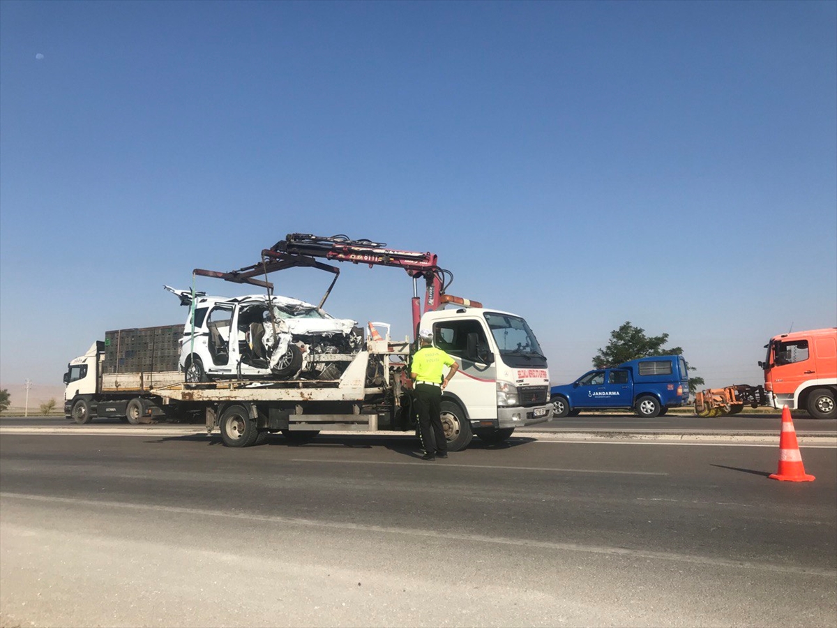 Konya'da tır ile kamyonetin çarpışması sonucu 6 kişi öldü, 2 kişi yaralandı. Karayolları ekipleri, yola dökülen amonyum nitratı temizledi.