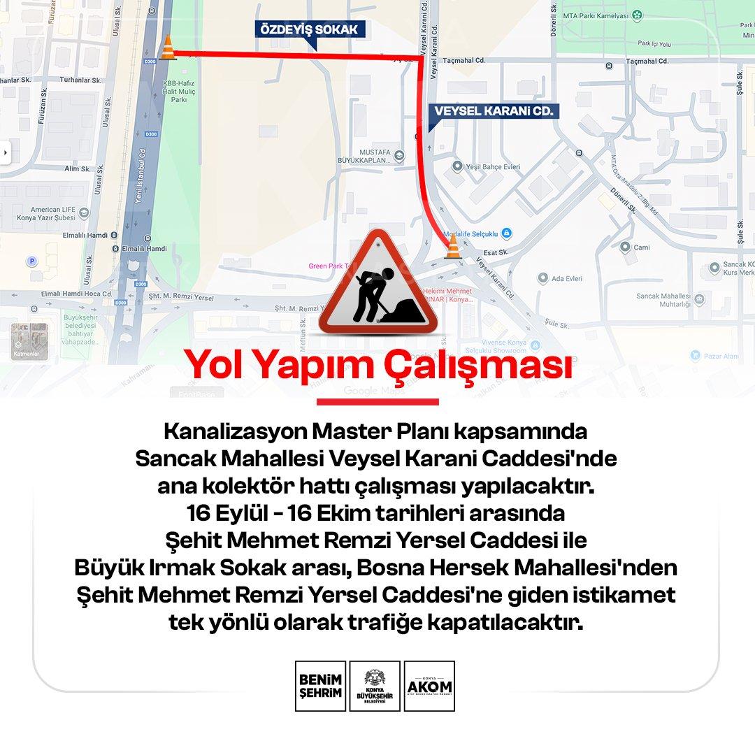 Çalışmalar nedeniyle 16 Eylül – 16 Ekim tarihleri arasında Şehit Mehmet Remzi Yersel Caddesi ile Büyük Irmak Sokak arasındaki güzergâh, Bosna Hersek Mahallesi'nden Şehit Mehmet Remzi Yersel Caddesi'ne giden istikamet tek yönlü olarak trafiğe kapatılacak.