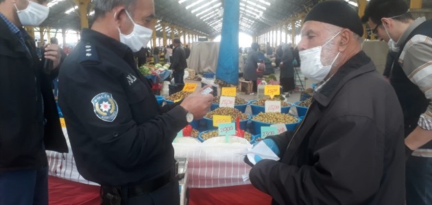 İlçedeki pazar yerinde denetleme yapan Seydişehir Emniyet Müdürü Kasım Özdemir ve Zabıta Amiri Yunus Uyar, pazarcı esnafına sosyal mesafe konusunda uyarılarda bulunarak, maskesi olmayan kişilere maske dağıttı.