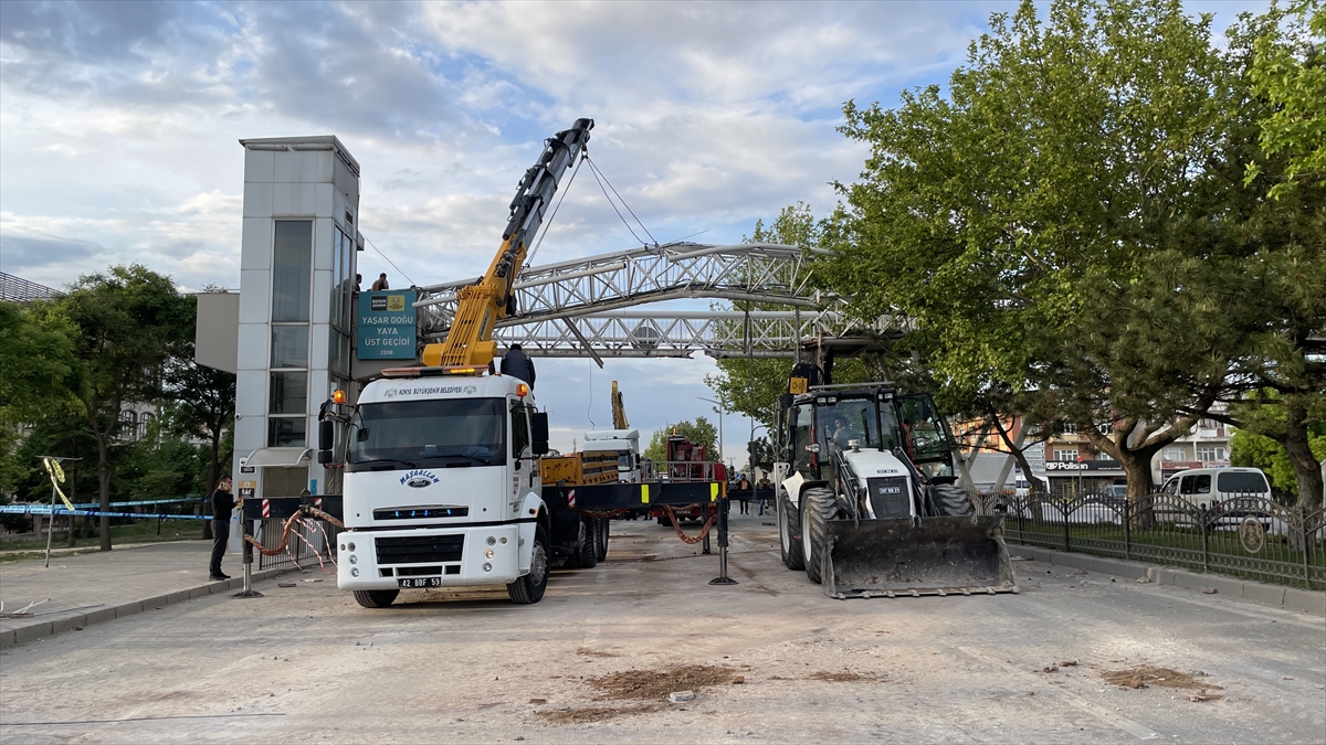 Yaralı Konya Şehir Hastanesine kaldırılırken trafiğe tek taraflı kapatılan yolda geçit enkazını kaldırma çalışması başlatıldı.