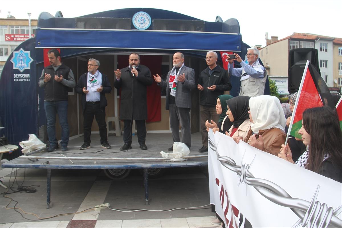 Konya'nın Beyşehir ilçesinde sivil toplum kuruluşlarının öncülüğünde Gazze'ye destek yürüyüşü yapıldı.