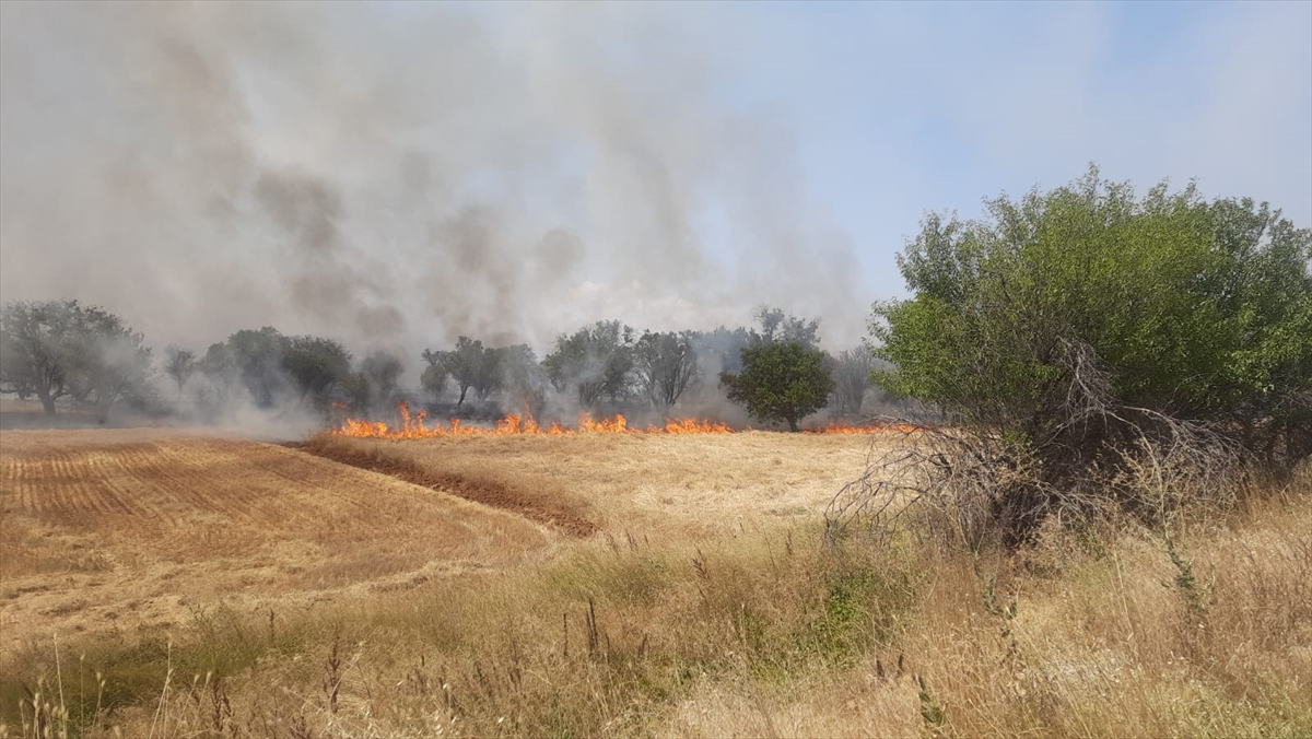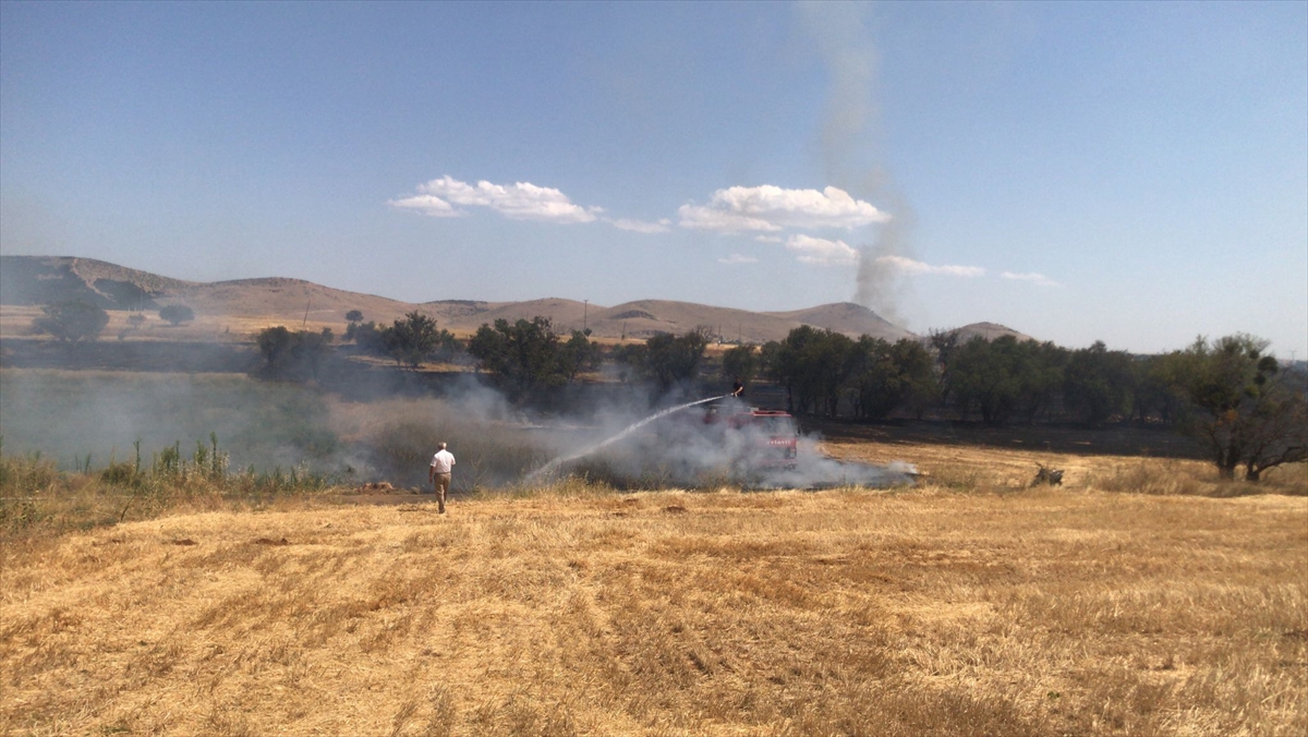 Konya'nın Hüyük ilçesindeki İmrenler Mahallesi Uşak Pınarı mevkiindeki arpa ekili alanda henüz bilinmeyen bir nedenle yangın çıktı.
