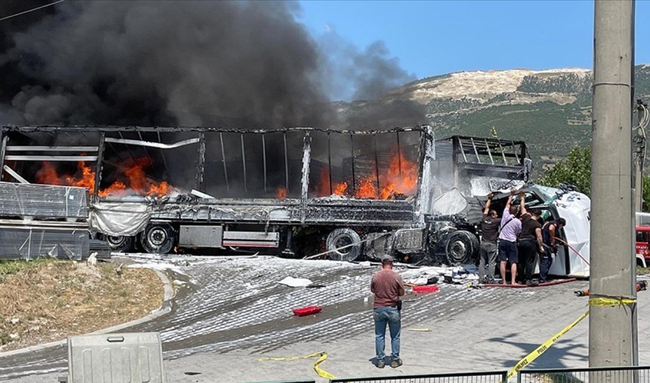Çarpışmanın ardından 3 tırda yangın çıkarken, kaza yerine polis, itfaiye ve sağlık ekipleri sevk edildi.