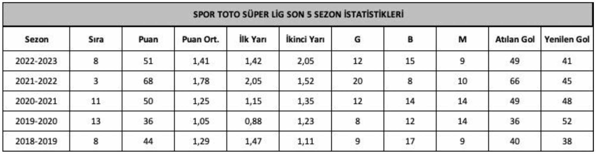 30 aylık süre içerisinde kurumsal, idari, sportif ve tesisleşme anlamında Konyaspor Kulübü kendine yakışır şekilde yönetilmiş, ülkemizin önde gelen ve adından sıkça söz ettiren bir kulüp haline gelmiştir. Görev yaptığımız süre de dahil olmak üzere futbol takımımızın son 5 sezonluk performansları dikkate alındığında, aşağıdaki tabloda da görüleceği üzere en yüksek puan ortalamasına sahip olan, tarihinin en yüksek puanını alan, yine son 5 yılın en yüksek ikinci yarı puan ortalamasını tutturan bir futbol takımı oluşturulmuştur.