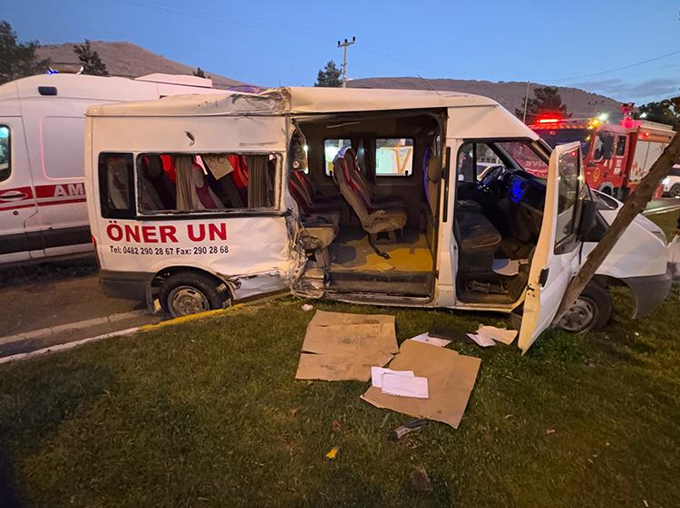 İstasyon Mahallesi'nde sürücülerinin ismi henüz öğrenilemeyen 33 DRD 66 plakalı kamyon ve işçileri taşıyan 06 JRT 45 plakalı servis çarpıştı.